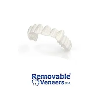 A custom, removable cosmetic shell that snaps over your existing teeth to instantly cover stains, chips, gaps, and mild crowding.